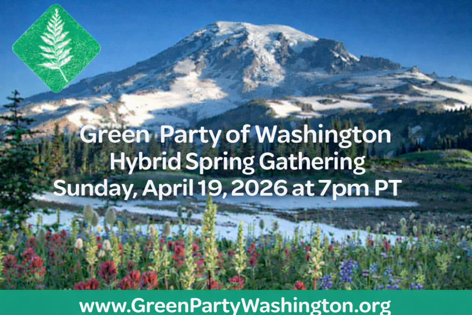 The Green Party of Washington State will hold our Spring Convention to discuss chapters, statewide organizing campaigns, consider bylaws amendments, and to accept nominations for our Coordinating Council and GPUS delegations.