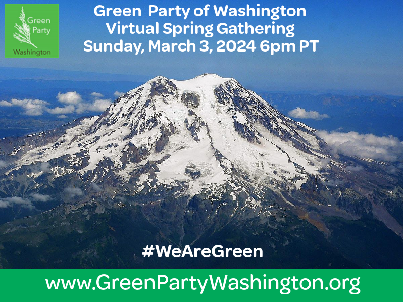 The Green Party of Washington State will hold an early Spring Gathering to consider statements from Green Party presidential candidates and to receive nominations for our Coordinating Council and GPUS delegations.